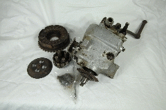Model H, 3 Speed Hand Change Gearbox and Clutch for Restoration Gearbox and Clutch is used, possibly Gearbox will need new bearings, and new friction plates, or New inserts ( in Clutch ) Drive Sprocket, possibly is none Standard, Clutch Drum in usable condition. ( Speedo drive unit not complete ) Number Stamped on top flange, of case HPBD, on side 1HP M 1. Some Damage to the Bottom Fixing Point on case. possibly fits 1933 250cc 350cc Machines |