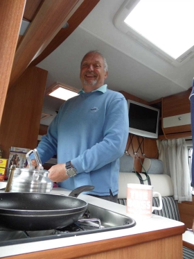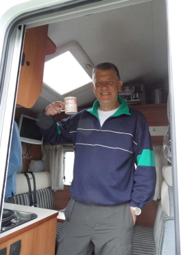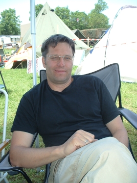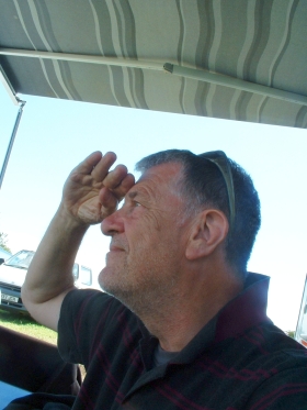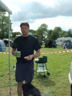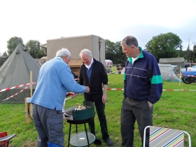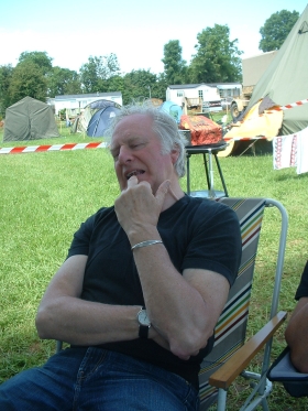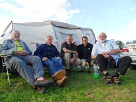 At campsite, Ron Pier passing my palm with silver, Trevor and Mr. Frost from USA, Dave