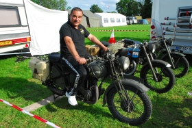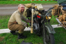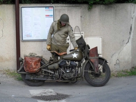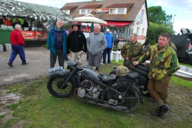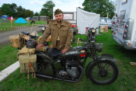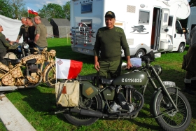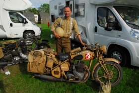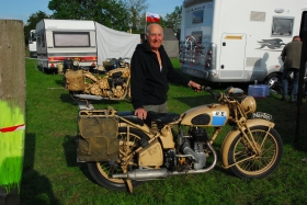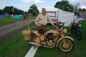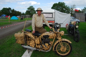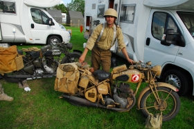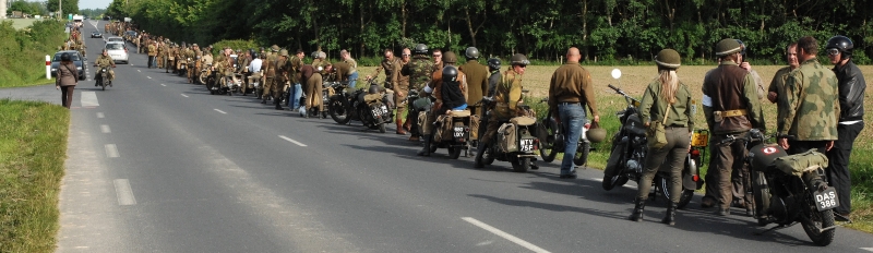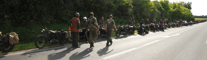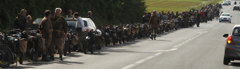 The organisers of this event, our good friend Ron Pier, John O. Brien and Co, not forgetting most helpfull members guy Tony, Colin, Andy ( very nice 16H ! ), Mick and Dave. The aim was to get together the largest parade of allied forces military motorcycles ( to go in the Guinness Book of Records ). The 65th Anniversary in 2009 reached 144. It looks like this year to exceed 200 machines. And all for a good cause, any surplus amounts being generated by this event will be donated to the Royal British Legion. Our aim was to bring to the Ètrèham campsite a few spares, should any machine breakdown.