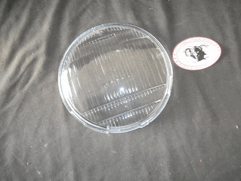 Head lamp glass, make unknown. Convex, 170mm dia, no script on glass. To fit H. Davidson& Indian head lamps + many other makes | ||||