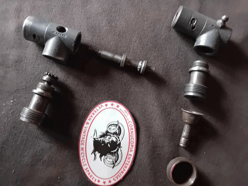 Indian 741B Front Wheel Speedo Drive Parts Used Genuine Indian For Restoration (The Four Parts on the R. Hand Side of Photo) |