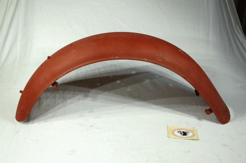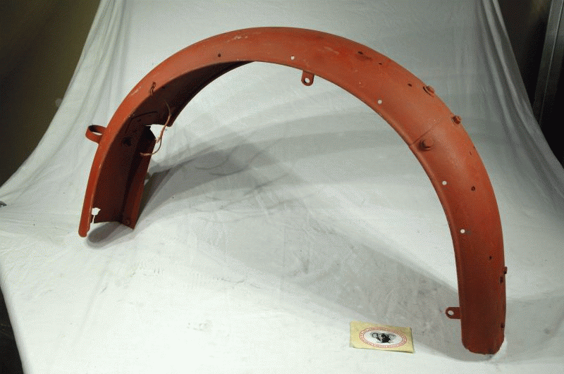 | Indian Rear Mudguard Genuine ( used ) for Restoration Hinge on Guard, cut is not original. But no loss of Length needs Rewelding fits 1940 Indian Chief 340B Indian Part No. 93192 |