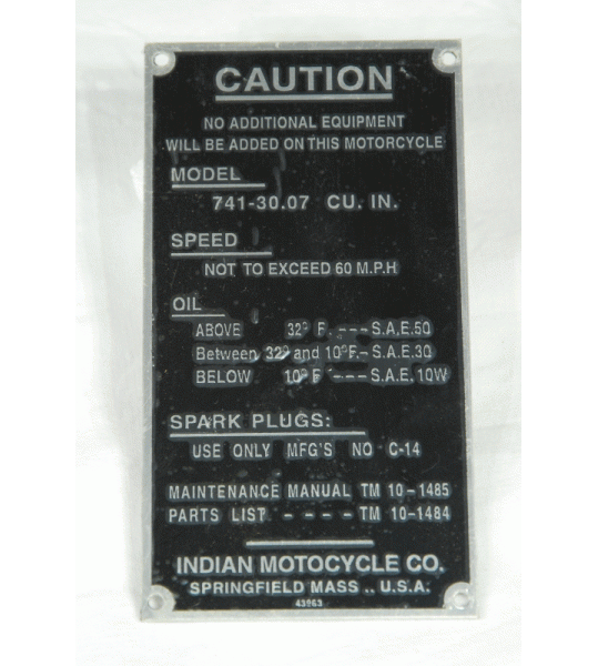 Indian Patrol Tank Identfication Plate Replica fits Military Models |
