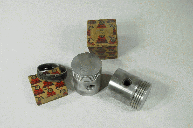 Indian 741B Pistons + 20 Thou Oversize = 64mm Complete with Ring Set and Pin Genuine NOS ( Some slight storage marks on Pistons ) fits Indian 741B 500cc V-Twin Indian Part No. 75494V |