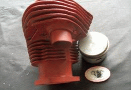 Indian Rear Cylinder Genuine Indian Chief ( used ) + 020 Oversize stamped On Flange 93076 includes used + 020 Piston, ( very little Wear ) for Restoration. Threads, Valves Seats not Deep sunken needs Reboring or new Liner, no Broken Fins Bead Blasted + Primer Coat fits 1940-43 Chief Indian Part No. 93071 |