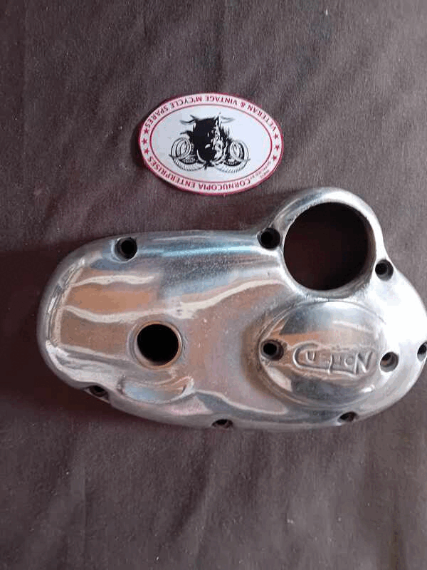 Norton Gear Box End Cover inner ( Lay Down G.Box ) Genuine ( used ) No Stamped on case GB8 2424 Bead Blasted, light polished Norton Part No. D12/300 T.N.73 |
