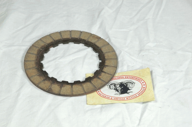 | Norton Clutch Friction Plate ( Make Surflex ) NOS bonded one Side, fits behind Pressure Plate fits all AMC Clutches from 1955 onwards Singles, Twins Norton Part No. 21260 |