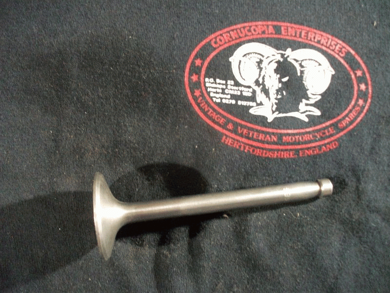 Norton Valve Exhaust NOS British Made ( James 3705 ) Head 1. 19/32 = 40,5 mm, Stem .371 = 9,42, Length 4. 7/16 = 113,3 mm fits 1933-40 350cc OHV Mod 50 & 55 Norton Part No. 3075 |