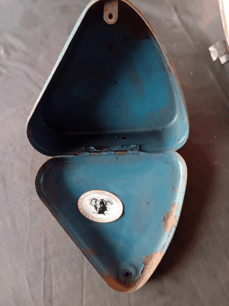 Panther 250cc Model 65 (Will also fit other larger models) Right Hand USED TOOL BOXES FOR RESTORATION (Original 250cc paint present) Flat type cover, less lid knobs, no dents |