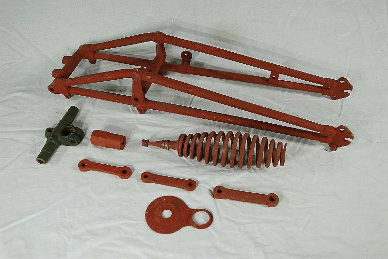 Triumph Girder Fork Parts Genuine ( used ) ( Forks are Triumph Webb Type ) Bead Blasted, Primer Coat Main Frame, Spring, 3 Side Links, Clip, Fork Head, Locknut, Fork Crown, Plate Shock Absorber fits 1941-45 Triumph 350cc 3HW OHV & 3S, 3SE SV |