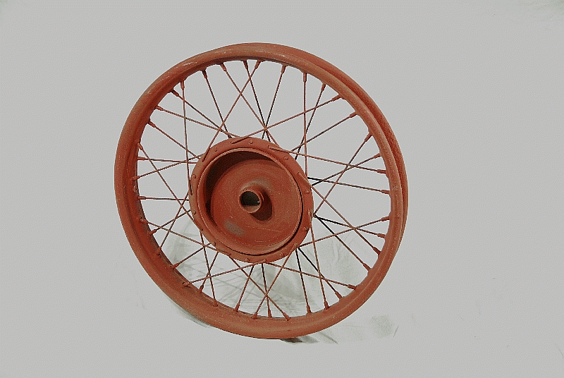 Triumph Front Wheel Genuine ( used ) for Restoration. many used Front Wheels in stock, some with Spindels / Bearings / Speedo Gear. Most need the Rims and Spoke replacing, but not all ! Most bead blasted, ( all with good Drum Surface ) fits 1940-46 3HW, 3S, 3SE + other Models |