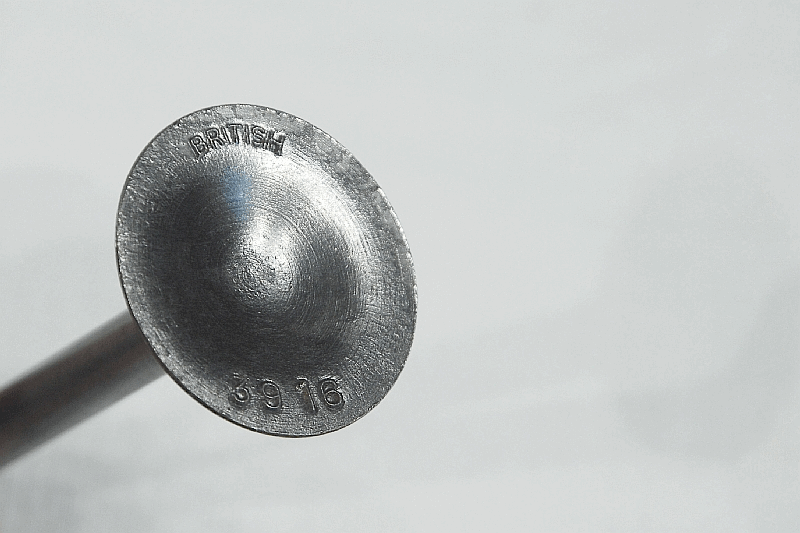 | Triumph Exhaust Valve British Made NOS from the 1960s Head 32,5mm, Shaft 7,85mm, Length End to End 96,69mm fits 1935-40 T70, 2/1, 2H, 2HC, 250cc OHV Triumph Part No. E1107 |