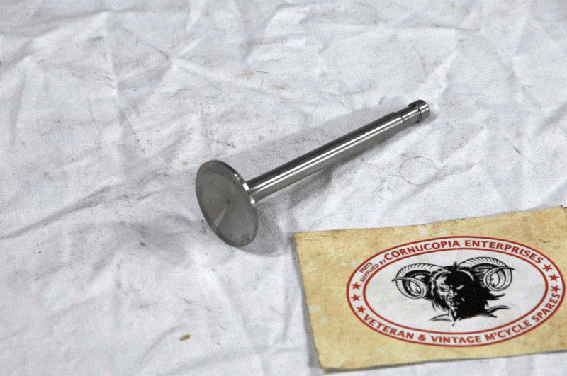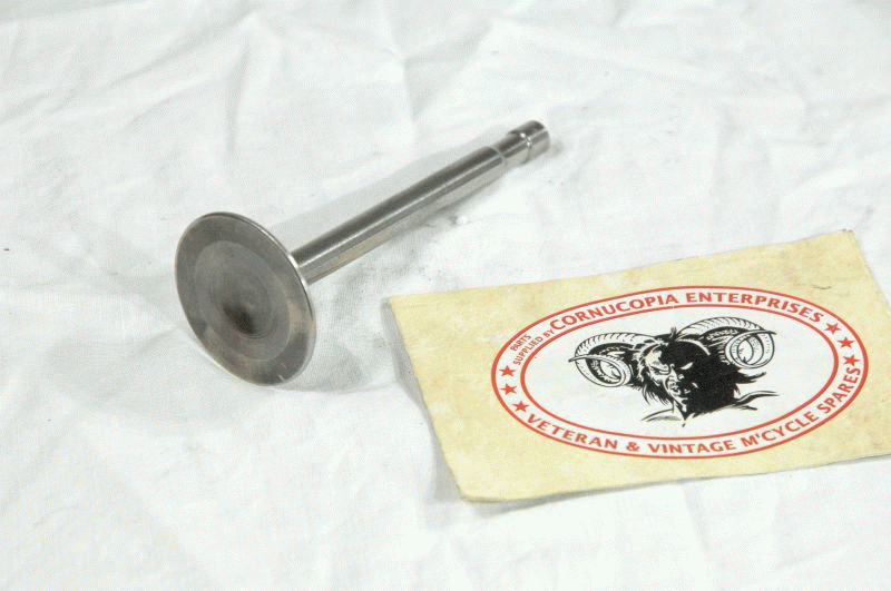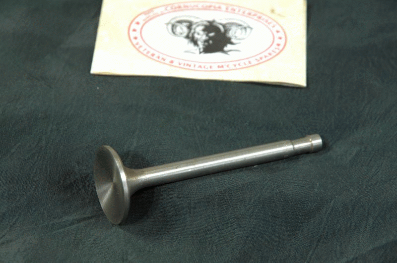 Triumph Inlet Valve NOS British James Head 1. 1/2 = 38,1mm Length ( From under V.Seat) 3. 11/16 = 93,6mm Shaft .310 = 7,87mm fits 1936-40 OHV 350cc 3/2, 3H, T80 |