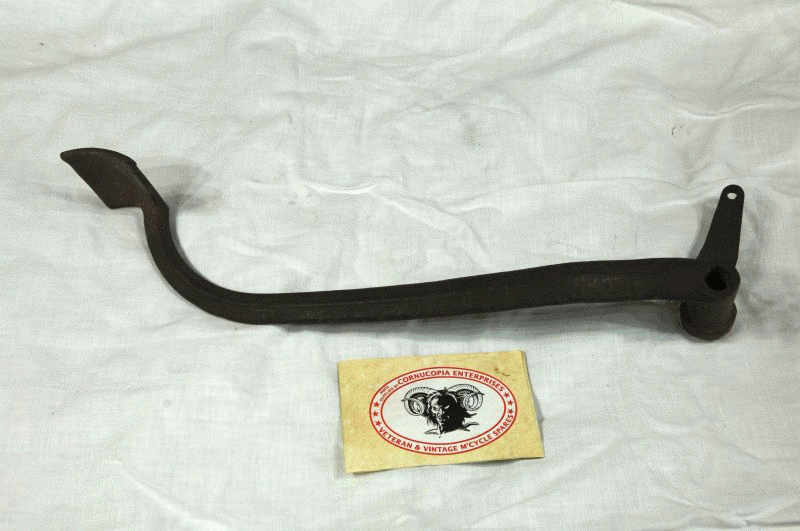 Triumph Brake Pedal Genuine Triumph, NOS this pedal was fitted with the Rubber Pad Pre War Items rough casting Lines on side + line Markings on Pedal Area ( this Pedal, uses the same Part No., same shape, for all Rigid 1946-54 3T-5T-6T-T100, but has a polished Surface ) fits 1936-40 3HW, 3SW, War Dept Machines etc. ( civil Model ) |