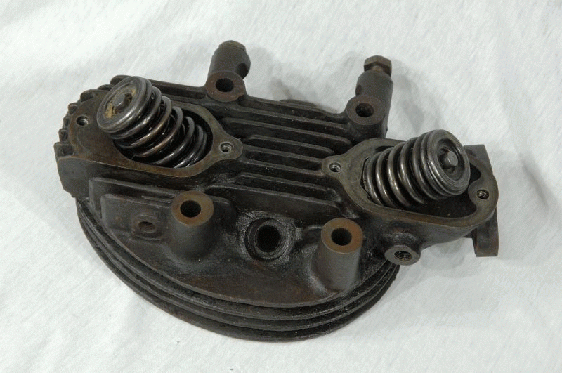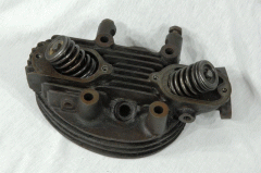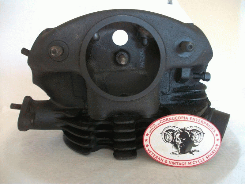 Triumph Cylinder Head Genuine used with Valves and Coil Springs Valves Seats look good Valves close tightly no broken Fins Threads good for Restoration fits 1937-40 Model 2H Triumph Part No. E1103 B |
