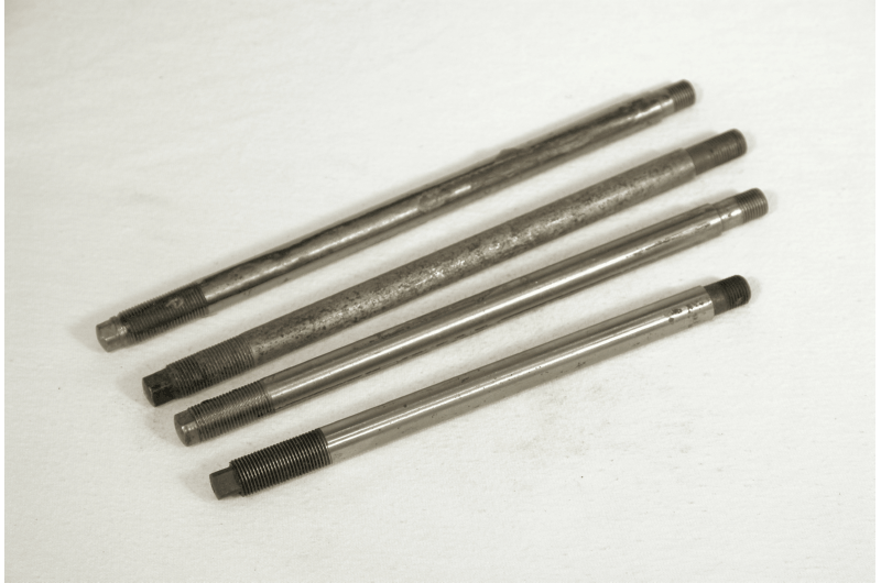 Triumph 3HW Girder Fork Spindles Fork Genuine Triumph NOS fits models 1941-45 3HW, 3SW ( give Length, Dia, Length of Threads, etc in mm please ) ( NOS Limited Amount ) Triumph Part No. E.1520 Top ( Two ) E.4182 Bottom Front ( One ) E.4183 Bottom Rear ( One ) |