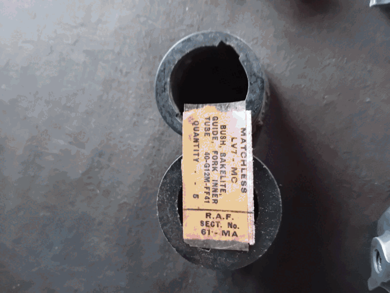 | MATCHLESS / AJS FORK ALLOY BOTTOMS (Fork Slider) used, Pt Nr 013632 Pair, (All Threads Good) fits both sides. + PAIR used OIL SEAL HOLDER Nr 014341 Lenth 115mm. + PAIR used BOTTOM CAPS Nr 013509. + PAIR NOS, TOP FORK BUSHES Nr 015286 + PAIR NOS, FORK DAMPER BOLT. 40-G12M-FF94 Later Pt Nr 101697. Fits most singles and twins From 1948. ALL PARTS |