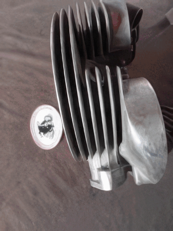 | Matchless Cylinder Genuine Matchless ( used ) stamped on Flange W41-G3L-E1 Standard Bore, some slight Marks on Bore but Usable ( will not need Reboring ) two chipped Top Fins includes Standard Size Genuine NOS complete Piston D3-E312 fits 1941 350cc G3L many in Stock ( all have damaged Fins, various bore Sizes ) 100,00 -200,00 € just ask ! |